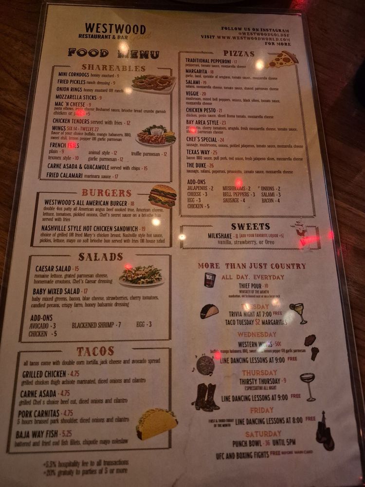 “ I attended Westwood for a work party recently, and overall I'll say this is a really fun, western themed bar. If you're looking for a casual spot to hang out with friends, complete with friendly bartenders, decent food, and quirky ambiance, this is a great spot for you. The highlight was the mechanical bull in the back, and while I wasn't drinking at this party, my friends seemed to really enjoy the craft cocktails, and I liked that they had a good amount of NA options available at the bar. My only critique (and it could just be that I'm getting old!) was that the volume of this bar is LOUD. I had a hard time speaking to folks, and it gave me the impression that usually this place is probably catering more to a young party-going crowd that's more about late night dancing, rather than sip on your cocktail and chat. And that's OK, you might just keep that in mind if you're deciding where to go on your night out on the town. ”